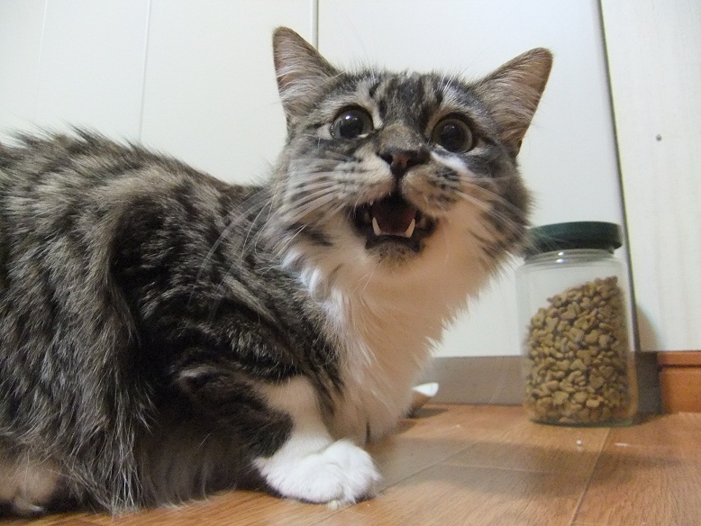 フード瓶にスリスリ、ダンニャに無言の訴えされると