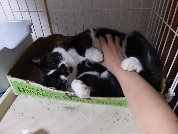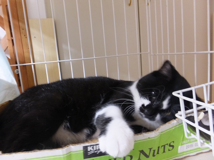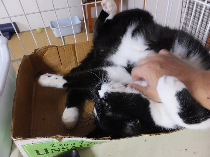 仰向けポーズで箱の中をグルグル回転したり