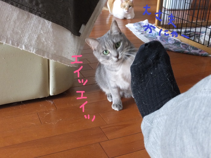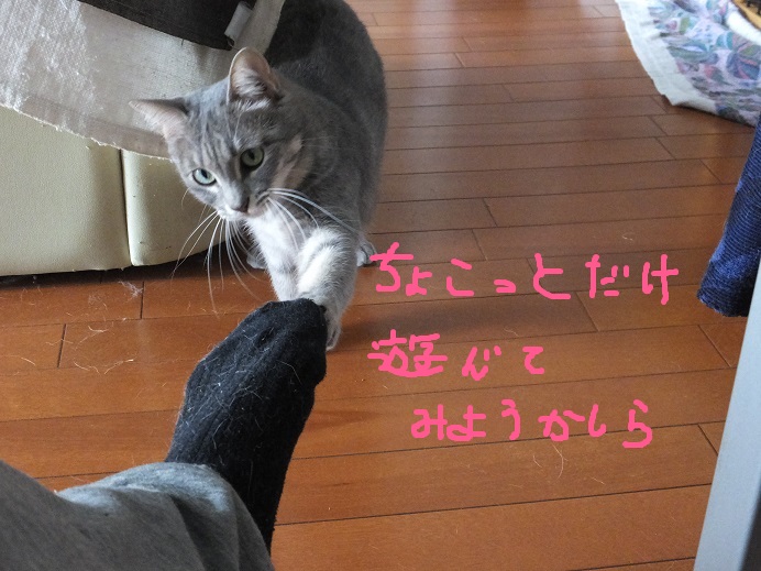 足にじゃれついてきた