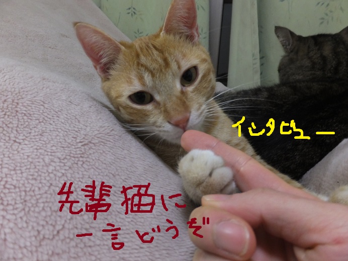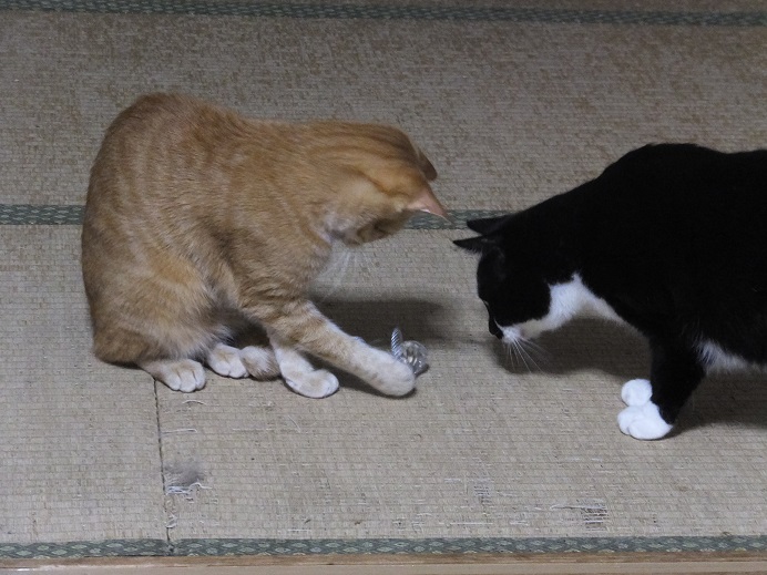 先輩猫にけっこう生意気な