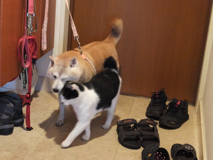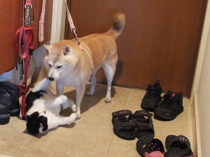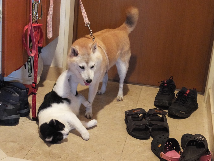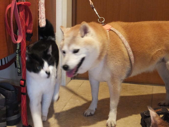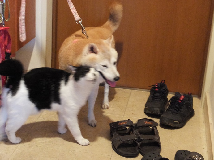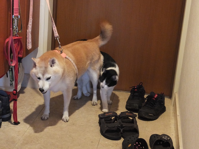 散歩から戻ると、「んも~待ってたにゃー」と