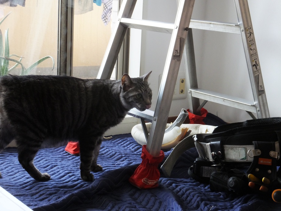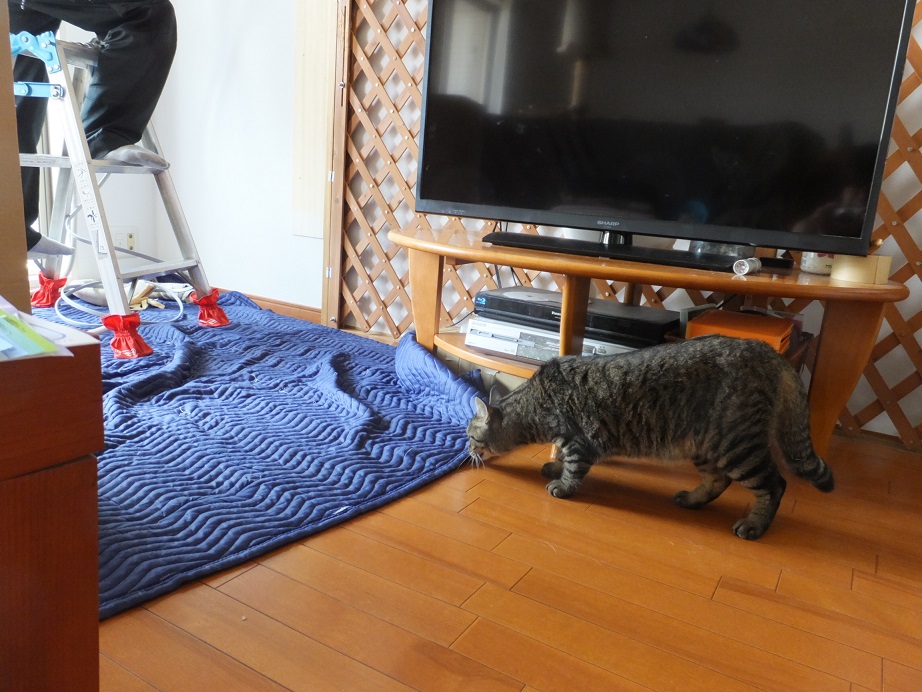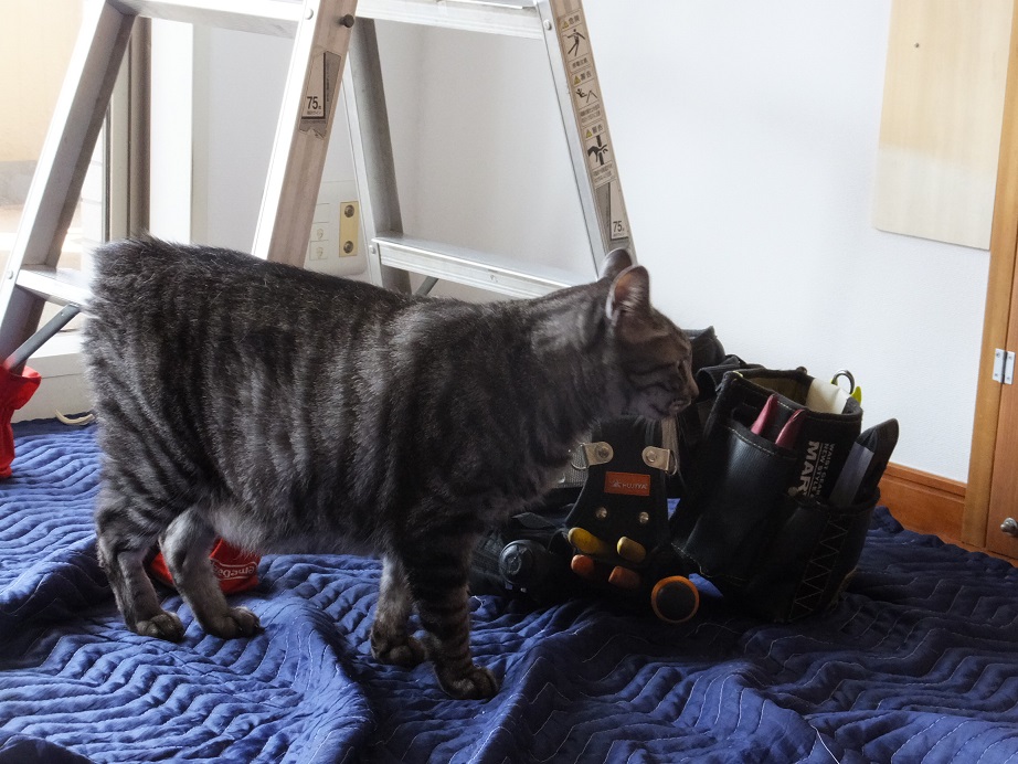業者さんの道具や足の匂いを嗅ぎまわり