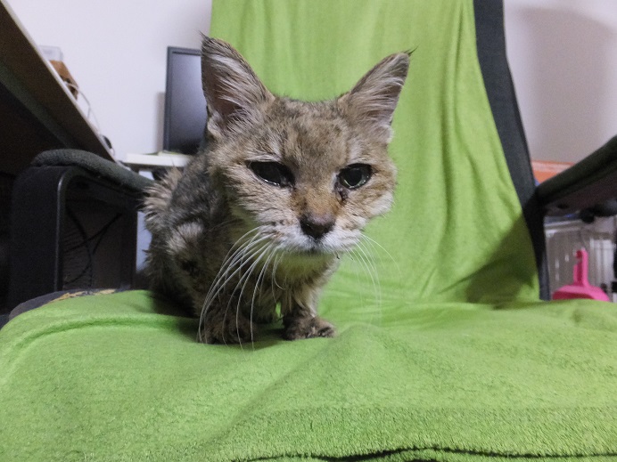 すっかりやせ細った体の