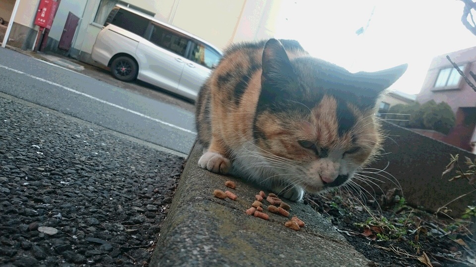2月初旬に久しぶりに再会した三毛猫ちゃん