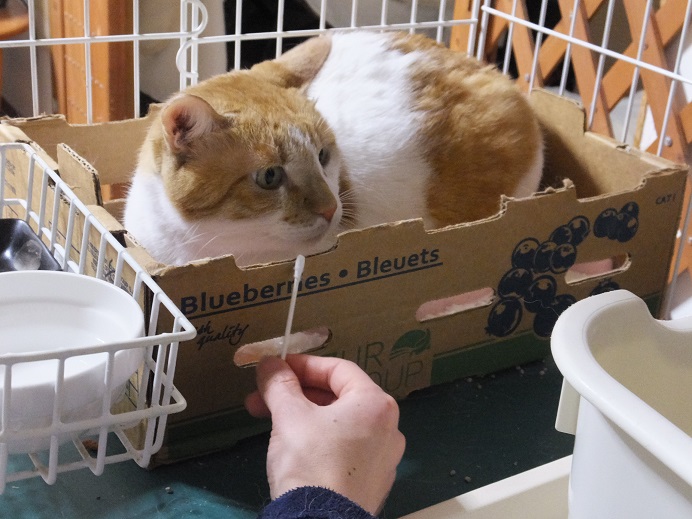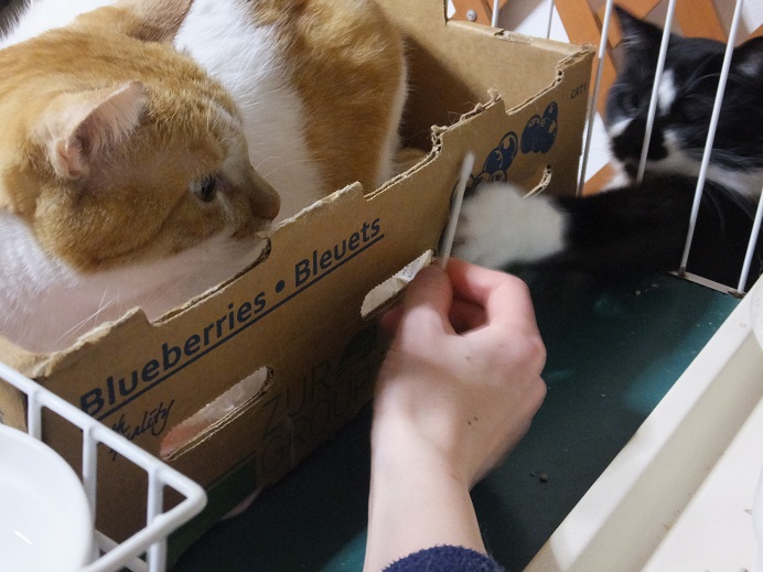 目で綿棒を追い始めたタクミ君